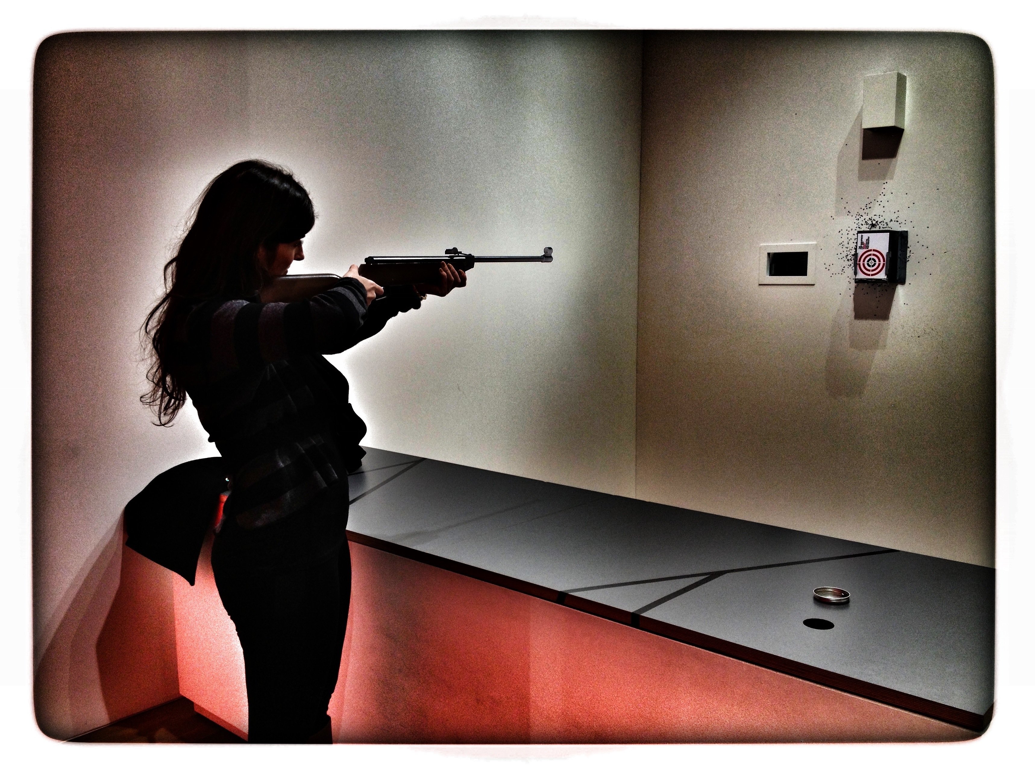 At the end of it all I was able to take home a target bullseye filled with holes, sadly I never hit the target despite all 9 attempts… But I leave with the memory of a great afternoon at the Photographer’s Gallery in which I too became a subject of the exhibition.